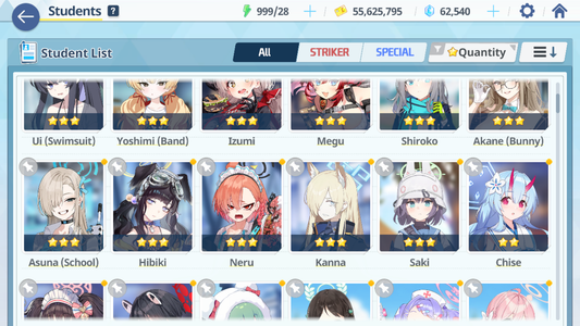 [GLOBAL/NA] [INSTANT] 4 limited 13x3* Seia Asuna Kazusa Yoshimi (Band) + 62k Pyroxene gems Blue Archive Starter Account