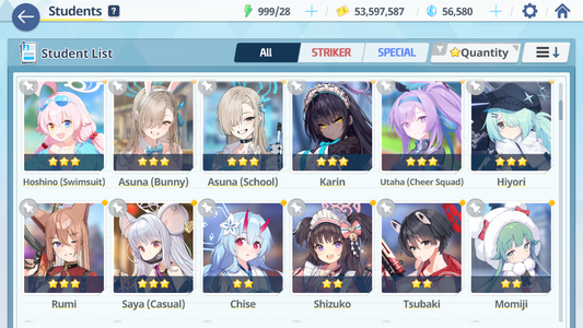 [GLOBAL/NA] [INSTANT] 4 limited 11x3* Seia Asuna Kazusa Yoshimi (Band) + 65k Pyroxene gems Blue Archive Starter Account