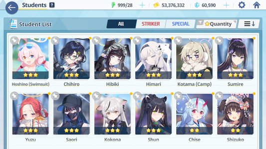 [GLOBAL/NA] [INSTANT] 4 limited 18x3* Hikari Nozomi Kazusa Yoshimi (Band) + 18k Pyroxene gems Blue Archive Starter Account