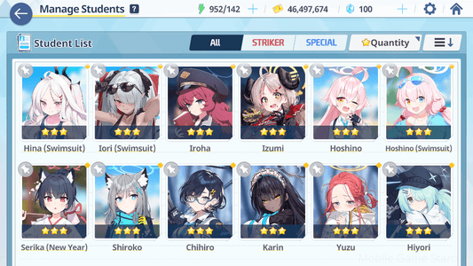 [GLOBAL/NA][INSTANT] 22x3* Mika Izuna Hoshino Hibiki + 22k gems Blue Archive Starter Account