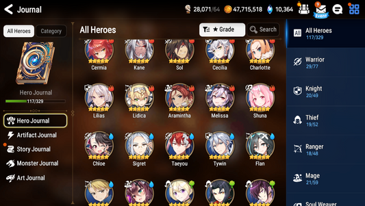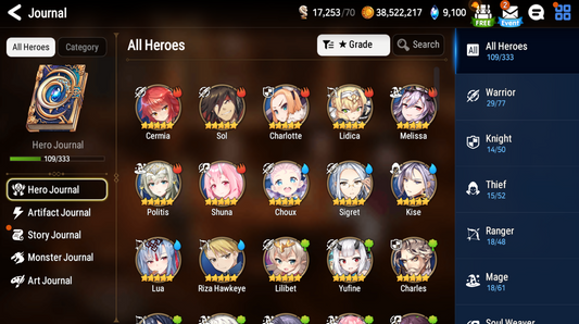 ML: Straze/Conqueror Lilias/Lionheart Cermia/Belian/Spirit Eye Celine/Commander Pavel/Solitaria/Maid Chloe/Apocalypse Ravi/Fallen Cecilia/Arbiter Vildred/Remnant Violet/ Briar Witch Iseria/Archdemon's Shadow/Requiem Roana/Specter Tenebria/Top Model Luluca/Zio/Urban Shadow Choux/Lone Crescent Bellona/etc.