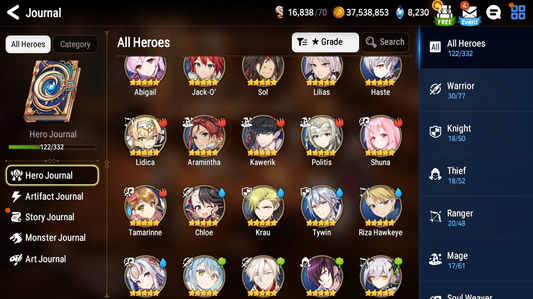 ML: Straze/Conqueror Lilias/Lionheart Cermia/Belian/Spirit Eye Celine/Commander Pavel/Solitaria/Maid Chloe/Apocalypse Ravi/Fallen Cecilia/Arbiter Vildred/Remnant Violet/ Briar Witch Iseria/Archdemon's Shadow/Requiem Roana/Specter Tenebria/Top Model Luluca/Zio/Urban Shadow Choux/Lone Crescent Bellona/etc.