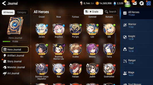 ML: Straze/Conqueror Lilias/Lionheart Cermia/Belian/Spirit Eye Celine/Commander Pavel/Solitaria/Maid Chloe/Apocalypse Ravi/Fallen Cecilia/Arbiter Vildred/Remnant Violet/ Briar Witch Iseria/Archdemon's Shadow/Requiem Roana/Specter Tenebria/Top Model Luluca/Zio/Urban Shadow Choux/Lone Crescent Bellona/etc.
